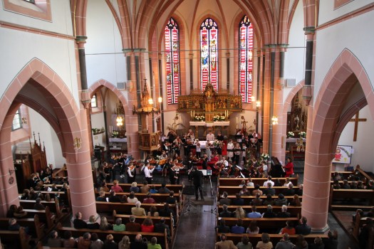 Das Benefizkonzert wurde gemeinsam mit dem A-Chor der Kastellauner Kirchturmspatzen unter Leitung des Dekanatskantors Volker Klein gestaltet. Durch die Kombination von Chor und Streichorchester bekam das Konzert seinen besonderen Akzent. Dazu kamen die Solisten Caroline Ley (Sopran), Mareike Faber (Flöte), Sebastian Kokich (Tenorhorn), Jan Kokich (Bratsche) und Milica Vickovic (Klavier).